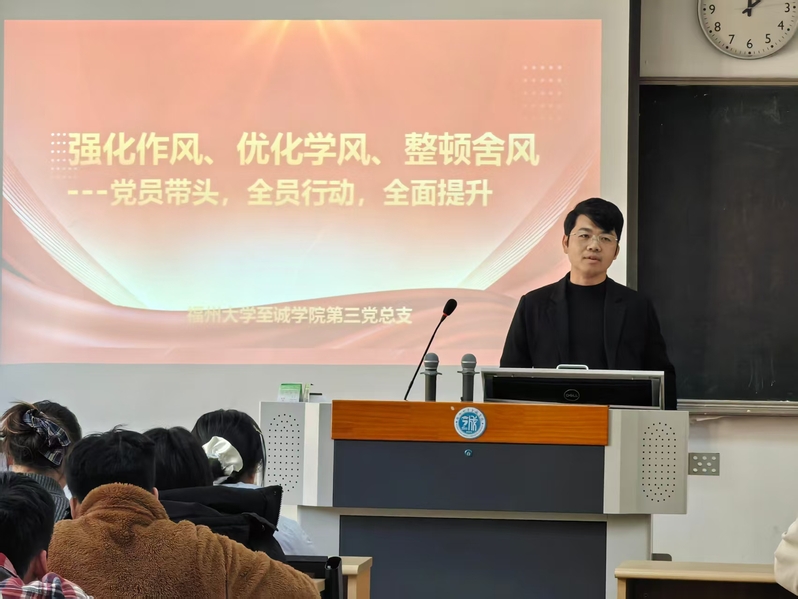2025年11月21日,福州大学至诚学院第三党总支召开“强化作风、优化学风、整顿舍风——党员带头,全员行动,全...