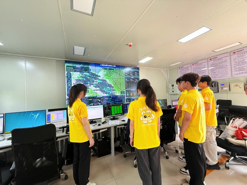随后,实践队前往国家能源集团富口光伏电站。国家能源集团富口光伏电站作为当地重要的新能源项目,在推动能源结构转型、促进绿色低碳发展方面发挥着关键作用。在工作人员的介绍下,实践队了解了电站的基本情况,包括电站的建设规模、装机容量、年发电量以及在节能减排方面所做出的贡献。实践队员不仅近距离接触了大型光伏电站的运营管理,深入了解了光伏发电的全过程,还感受到了新能源产业的蓬勃发展态势。